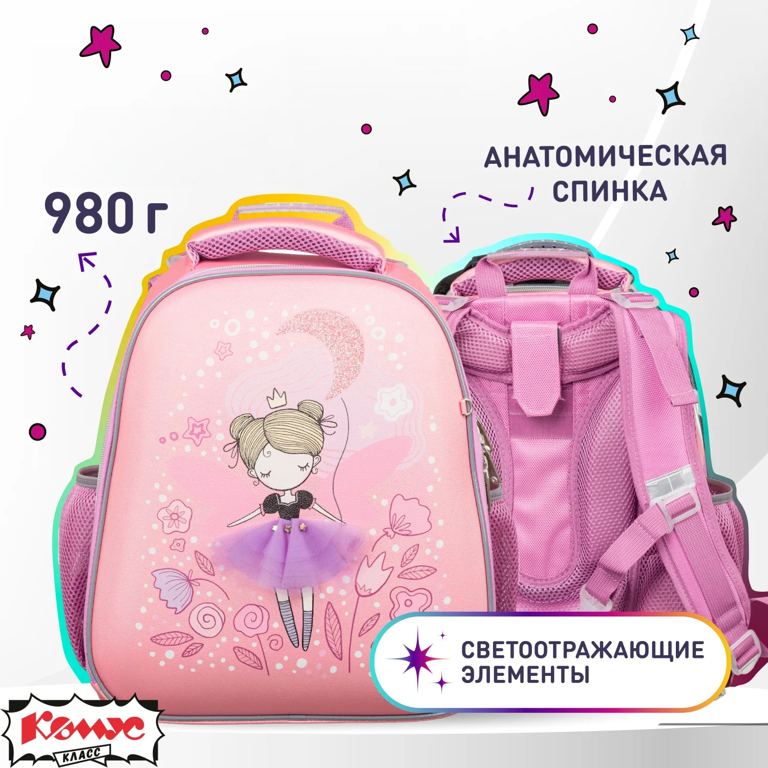 Ранец Basic Фея, 2 отд., эргоном. cпинка, экокожа