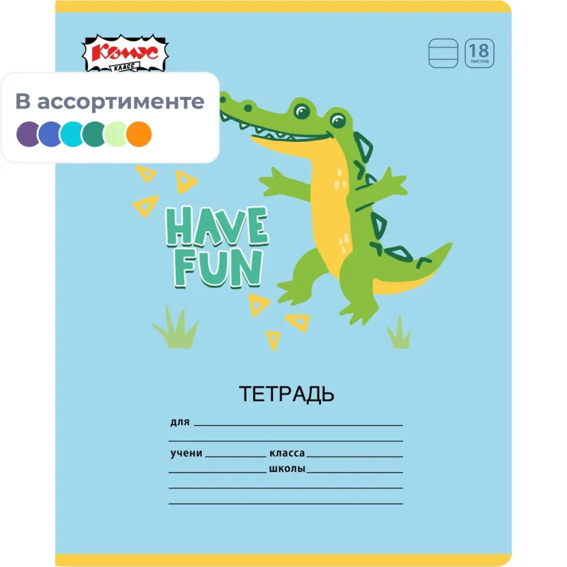Тетрадь школьная А5 18л линия Комус Класс Крокодильчик ассорти 2021691