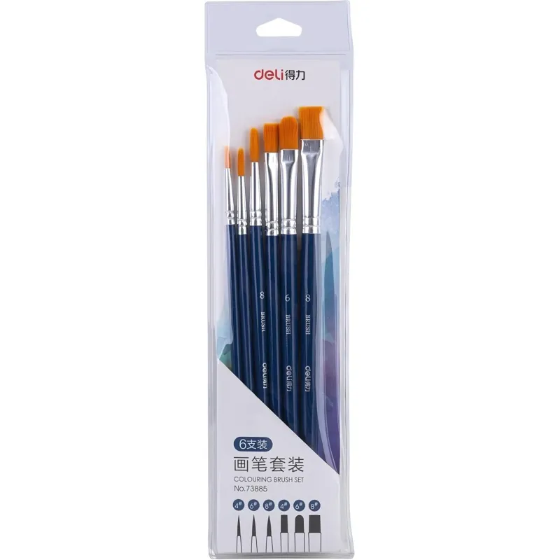 Набор кистей худож.DELI 73885 нейлон,средняя жестк,короткая ручка, 6шт/наб