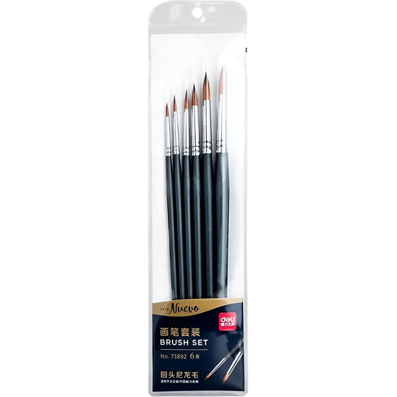 Набор кистей худож. DELI 73892 нейлон кругл,средн.жестк,корот.ручка,6шт/наб
