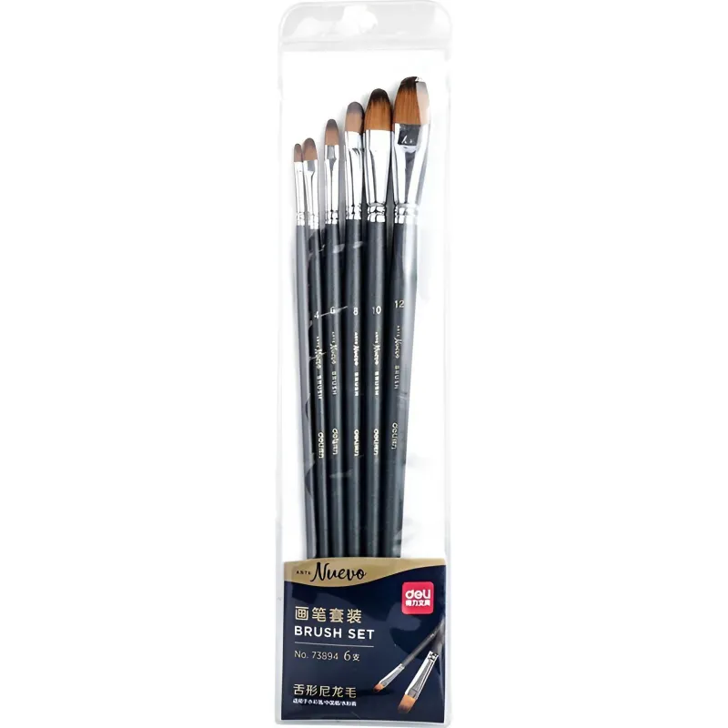 Набор кистей худож.DELI 73894 нейлон плоскоовал,ср.жестк,корот.ручк,6шт/наб