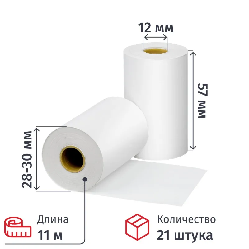 Ролики для касс 57мм, 30м, вт.12, 44г/м2, 12 рол/уп
