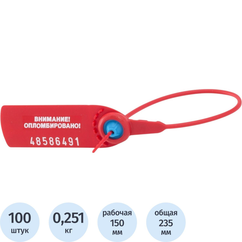 Пломба пластиковая номерная, одноразовая, 235 мм, красные, 50 шт/уп