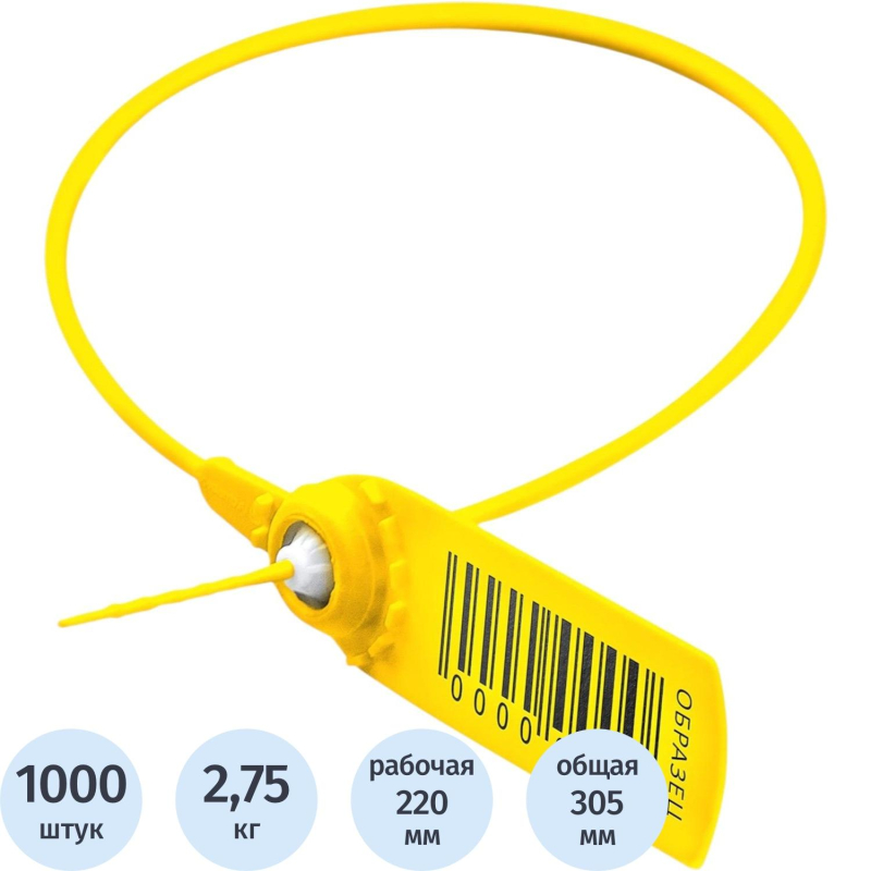 Пломба плас.однораз.320/350мм желт.1000 шт/уп
