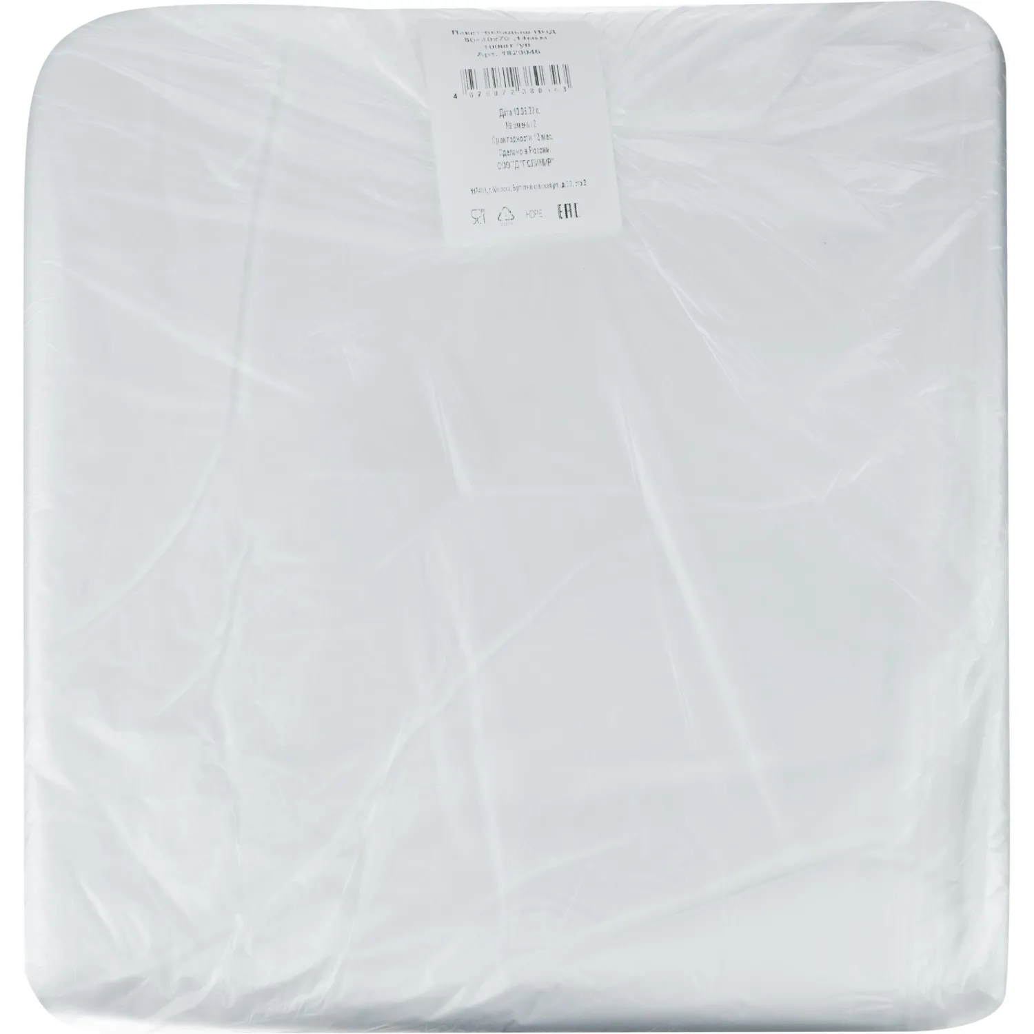 Пакет фасовочный для запайки ПНД, 60x90см 13 мкм, 100 шт/уп