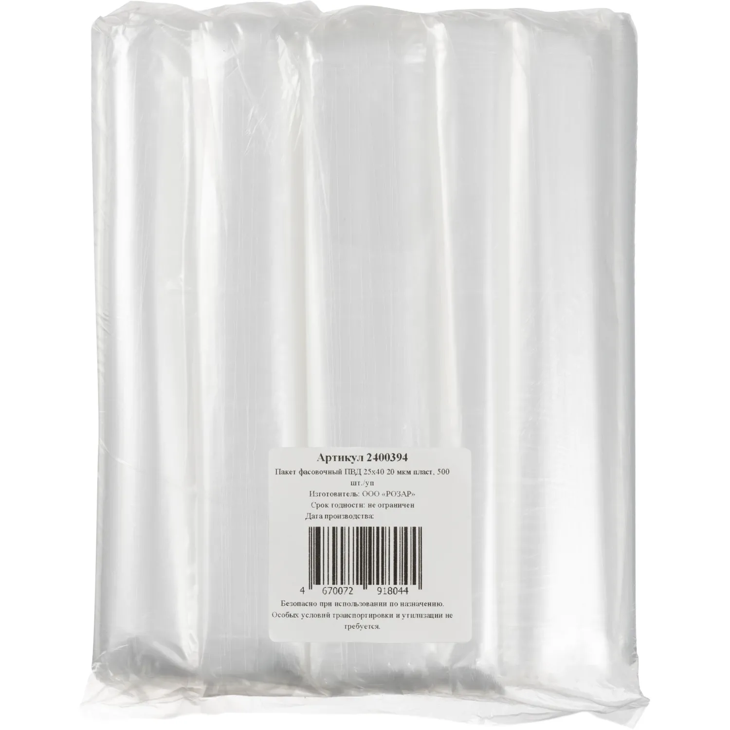Пакет фасовочный ПВД 30х40 20 мкм пласт, 500 шт./уп