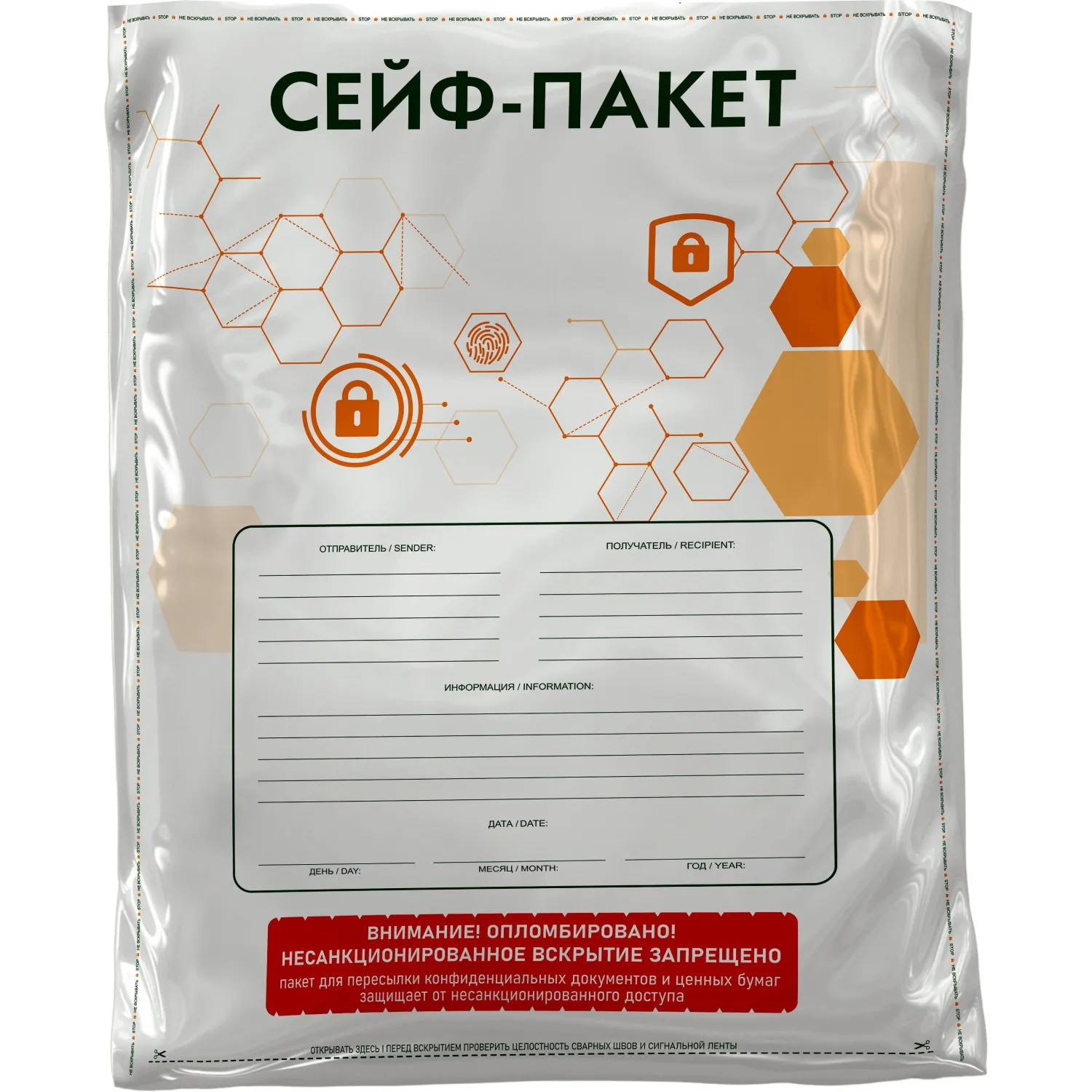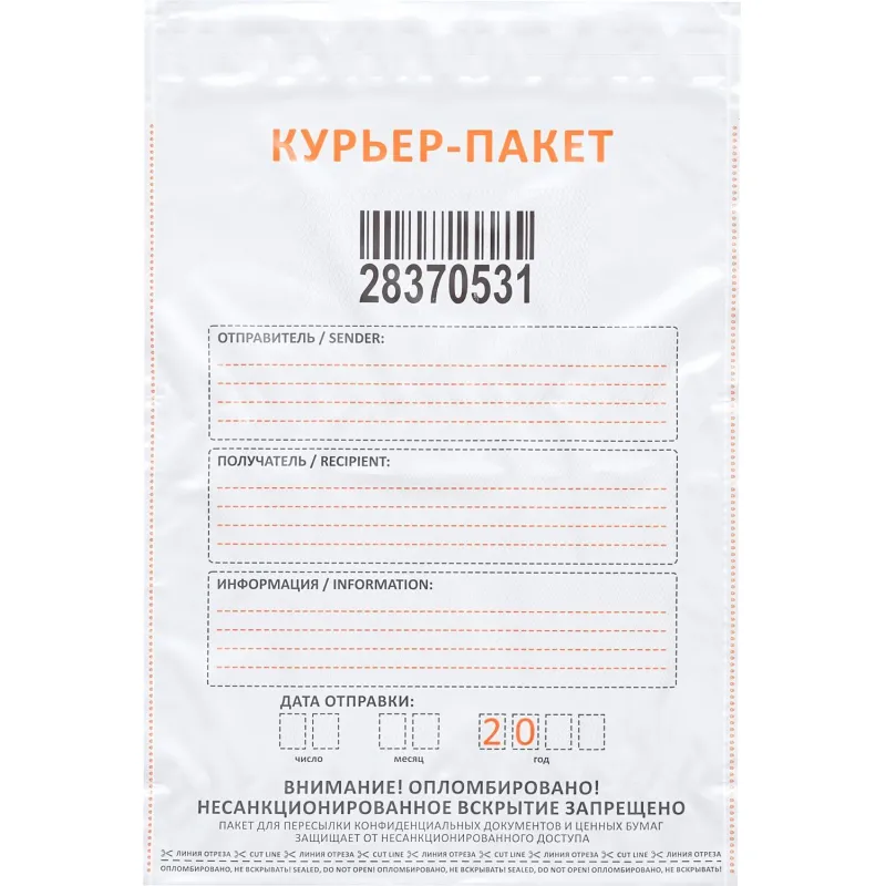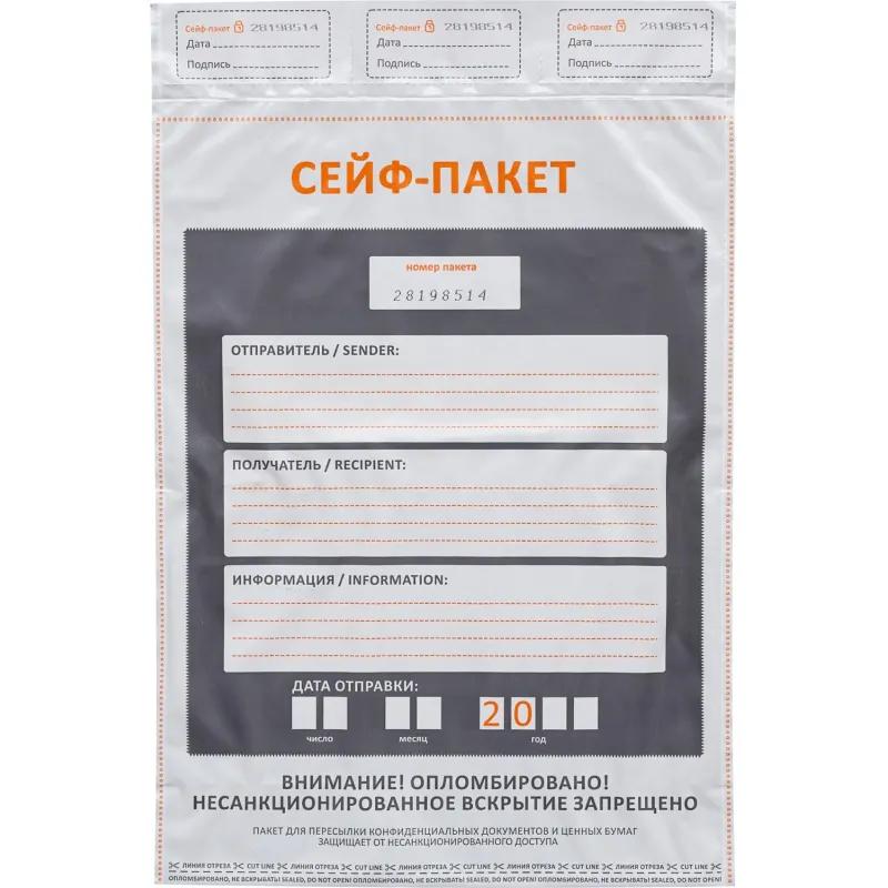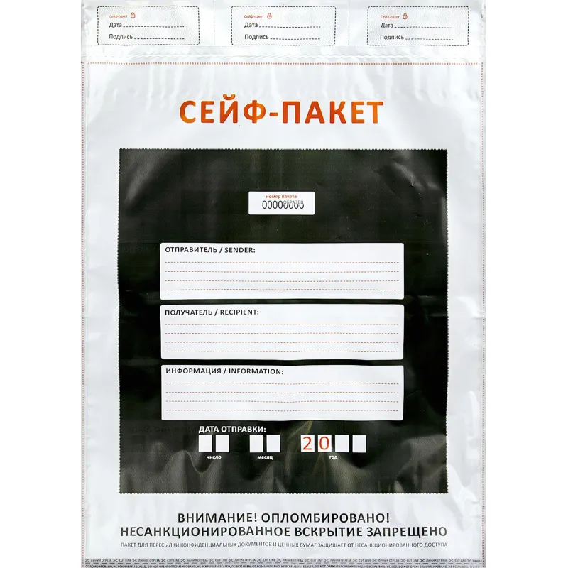 Сейф-пакет стандарт 295х400+40, 60 мкм, 50 шт/уп