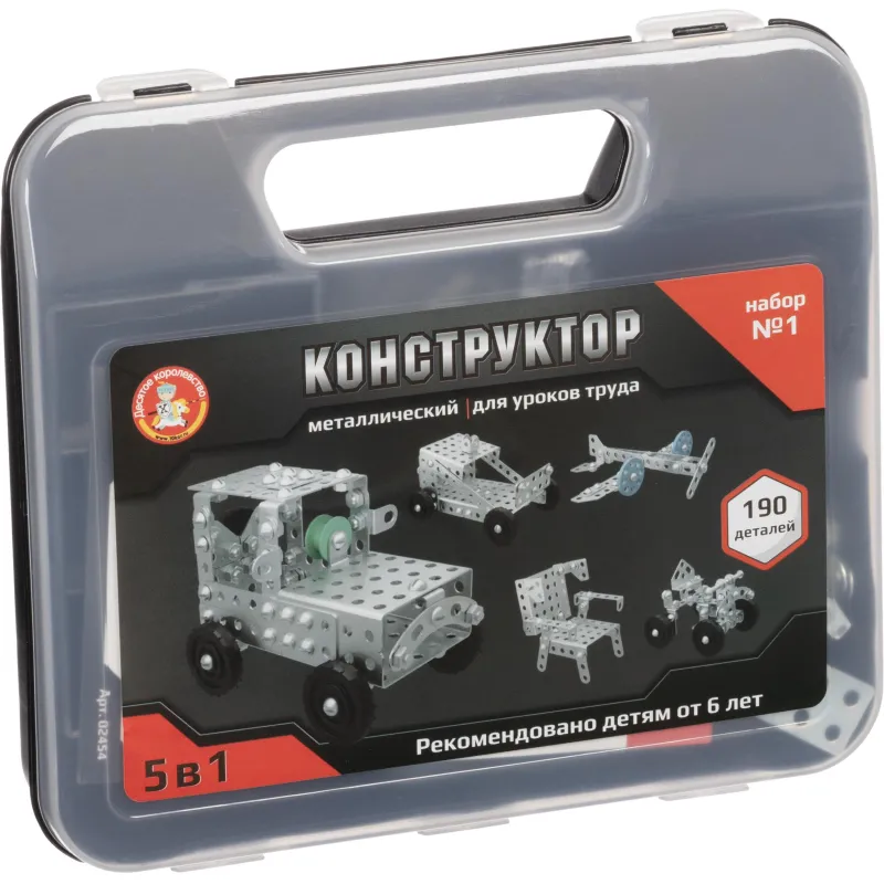 Конструктор металлический для уроков труда 5в1 №1 в пласт.чемоданчике,02454