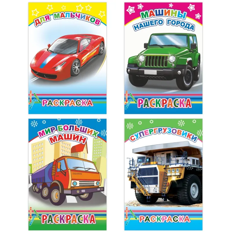 Раскраска Автомобили А4, набор 4шт , 9785912889745