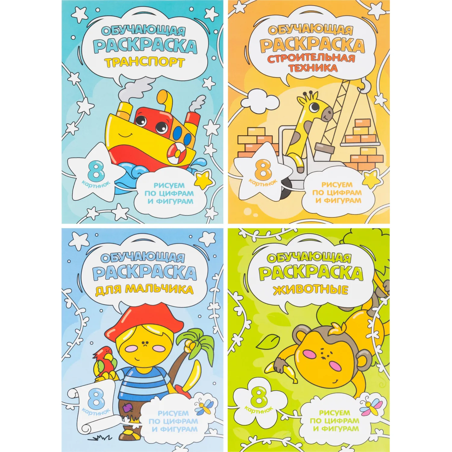 Раскраска обучающие по цифрам и фигурам х 4шт/уп. Для мальчиков