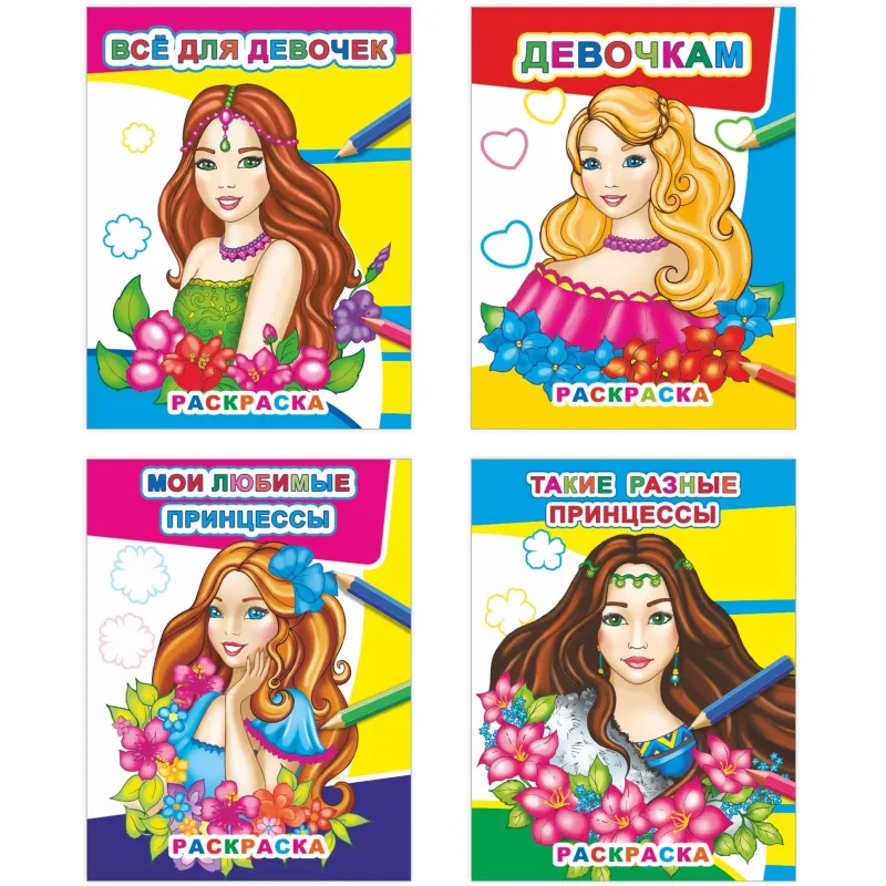 Раскраска Принцессы А4, набор 4шт, 9785912889653