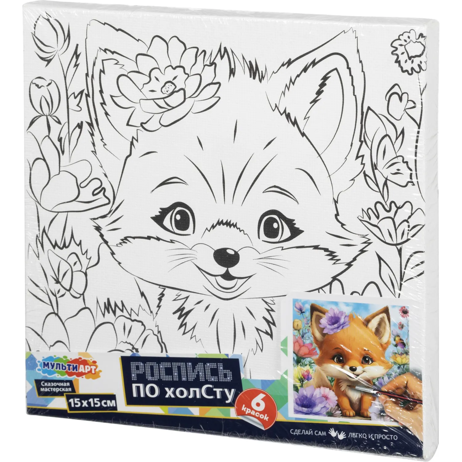 Набор д/дет тв-ва холст для росписи 15x15см лис МУЛЬТИ АРТ CANV15X15-118859