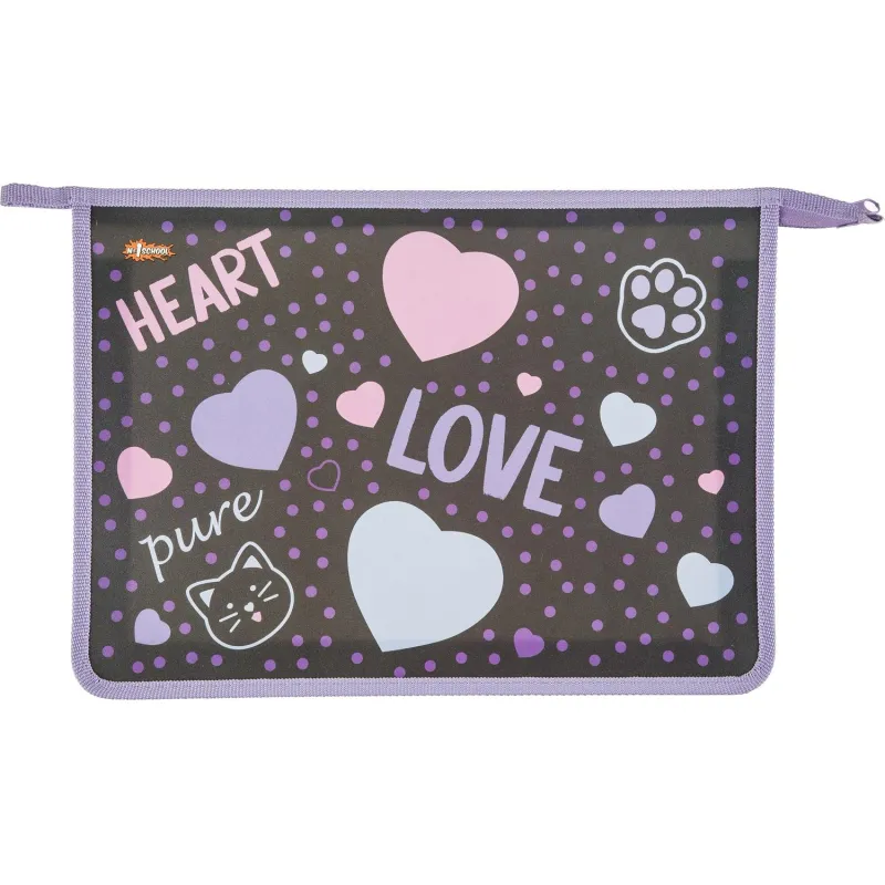 Папка для тетрадей Heart,А4,молн.,пласт.,ПТ-813