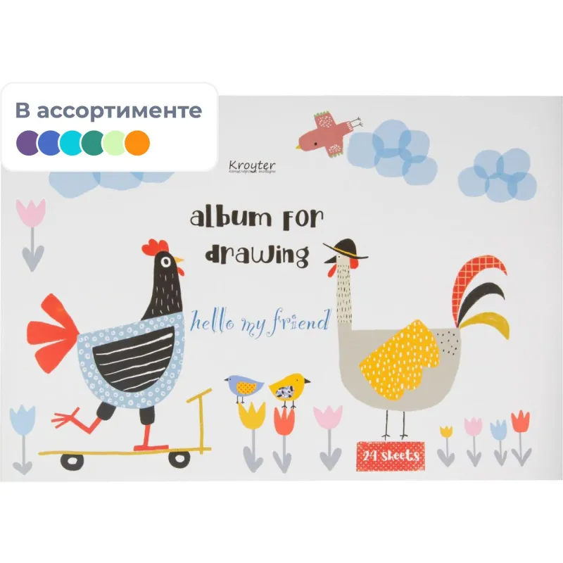 Альбом для рисования Kroyter 40л,А5,спир,планш,100гр,Аnimals 2шт/уп 63822
