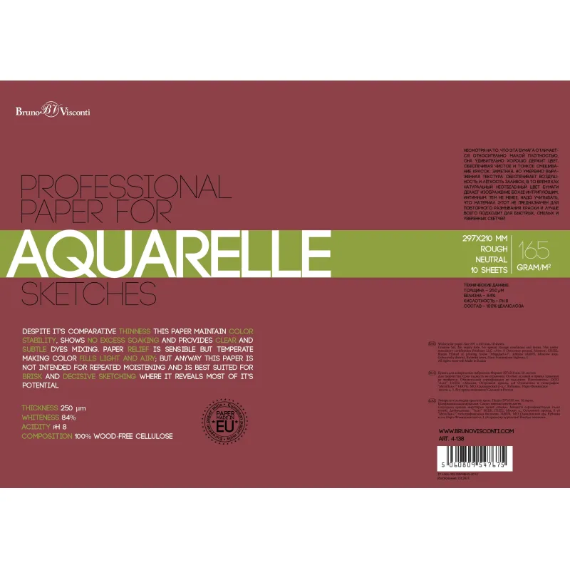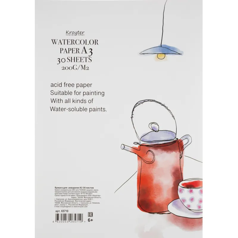 Бумага для акварели в листах KroyterА3 200г 30л/уп в инд.уп. Проф 65710