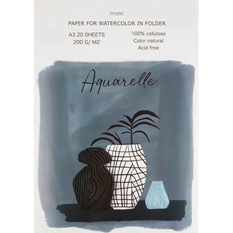 Папка для акварели в листах Kroyter А3 200г блок 20л/уп Проф 65970
