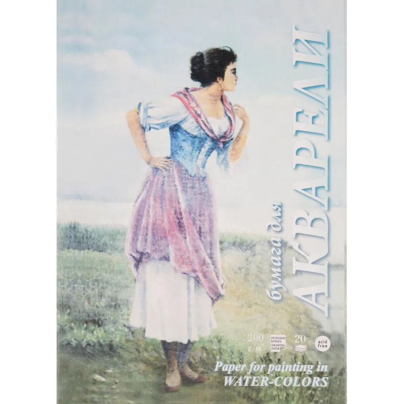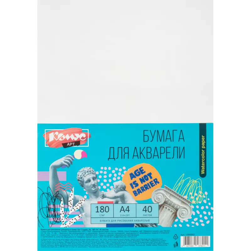 Бумага для акварели Комус Арт А4, 40 л., 200 г/м2, ГОЗНАК, в папке
