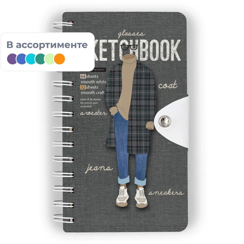 Блокнот для набросков на гребне А6+, 96л, в ассортименте 8 дизайнов 3-563