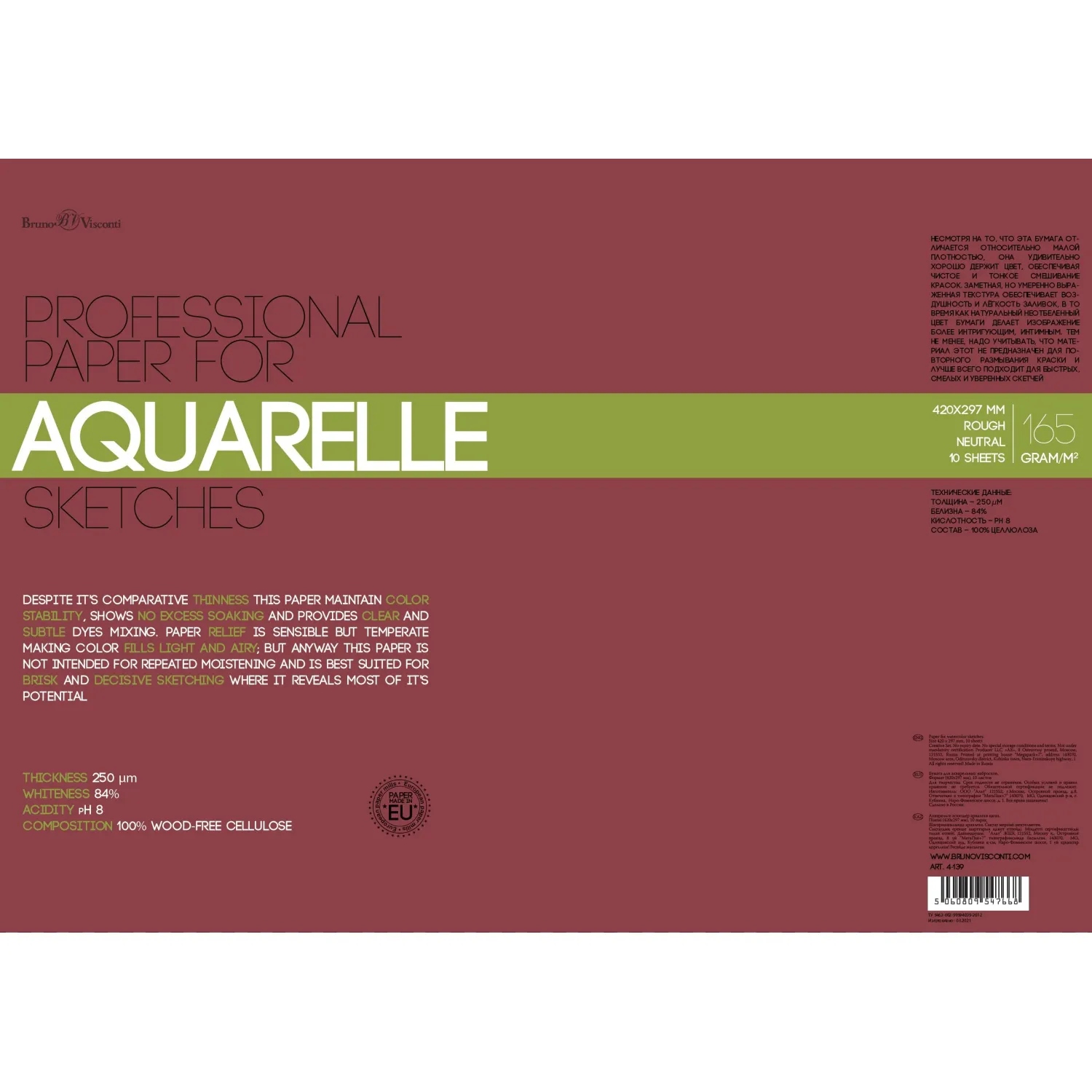 Бумага для акварели и акв.набросков А3 297х420мм 165г/м2 10л в папке 4-139