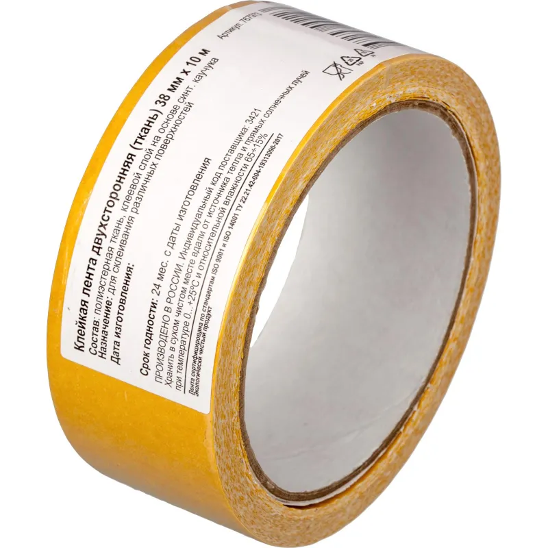 Клейкая лента двухсторонняя 38ммх10м , ткань