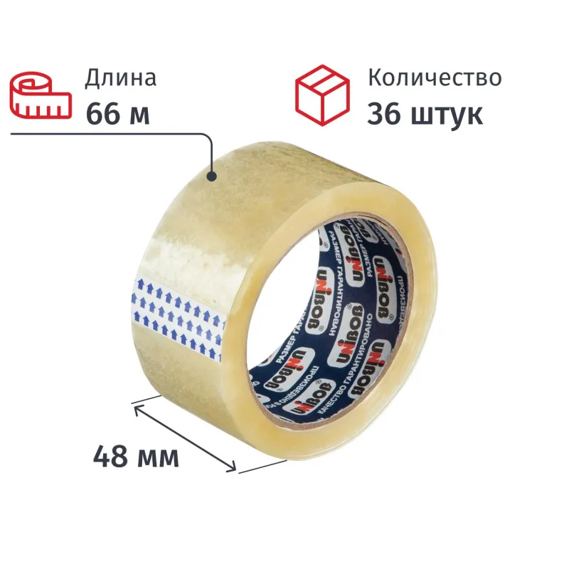 Клейкая лента упаковочная UNIBOB 700 48мм х 66м 47мкм, прозрачная, 36шт/уп