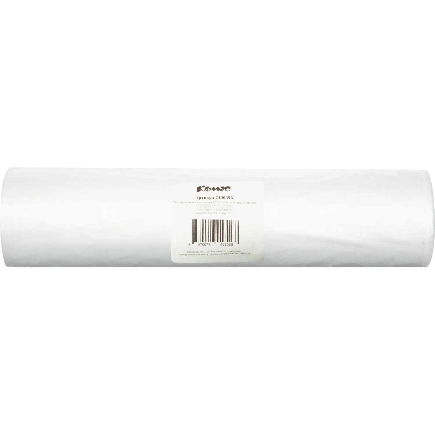 Пакет фасовочный Комус на втулке ПНД 25х40 см, 10 мкм, 250 шт./рул