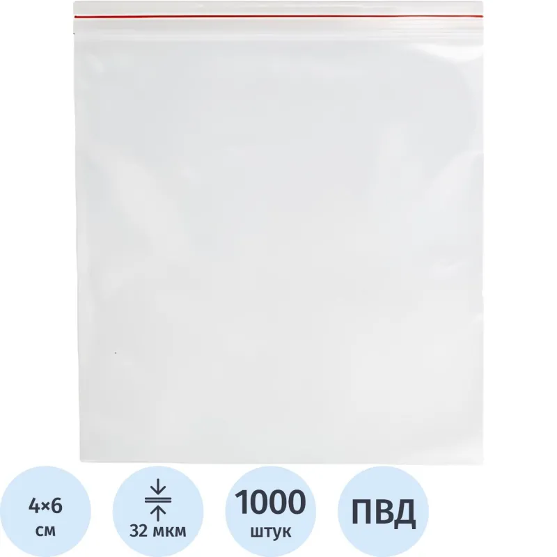Пакет с замком (Zip Lock) 4 х 6 см, 32 мкм, 1000 шт/уп эконом