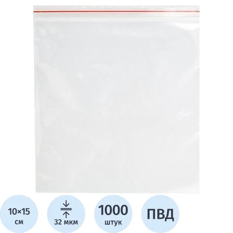 Пакет с замком (Zip Lock) 7 х 10 см, 32 мкм, 1000 шт/уп