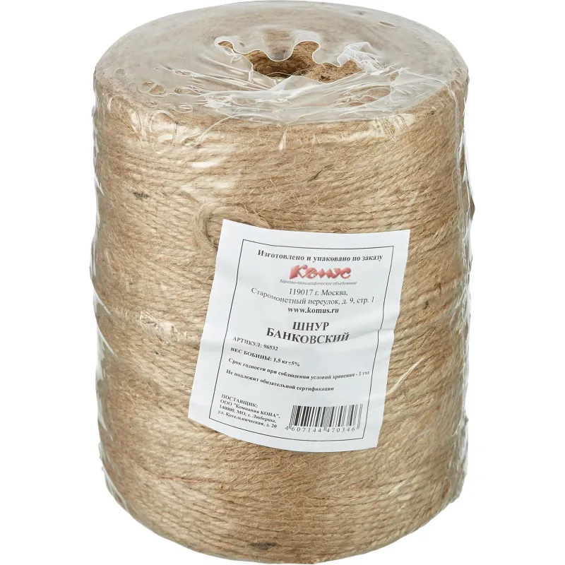 Шнур банковский джутовый, полиров., ~1,5 кг, диам 1,5 мм