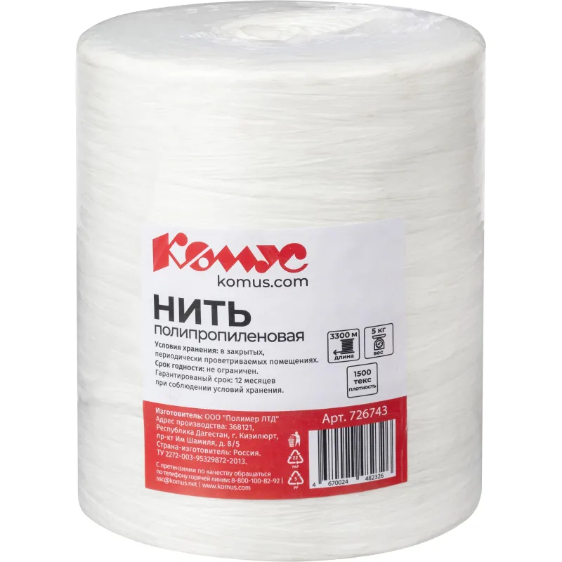 Нить п/п 1500 текс в бобине 5 кг + 10%, 3300м