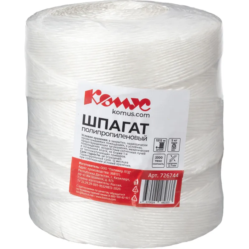 Шпагат крученый п/п 3300 текс в бобине 5 кг + 10%,1515м