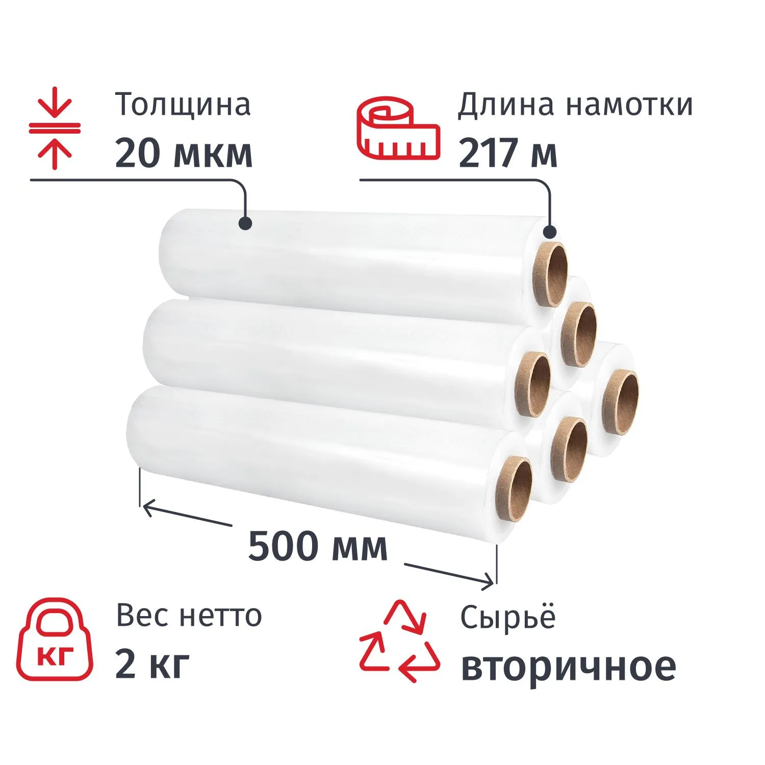 Стрейч-пленка втор.сыр для ручн.уп 20мкм 50см 217м 2кг нетто белая(6 шт/уп)